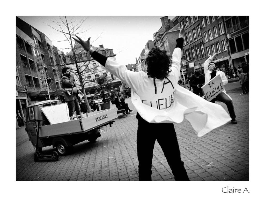 Initialement inventé dans le cadre des manifestations « StillStanding For Culture », l’intervention est facilement adaptable selon le nouveau sujet révoltant sur la table des autorités ou les nouvelles lois édictées.