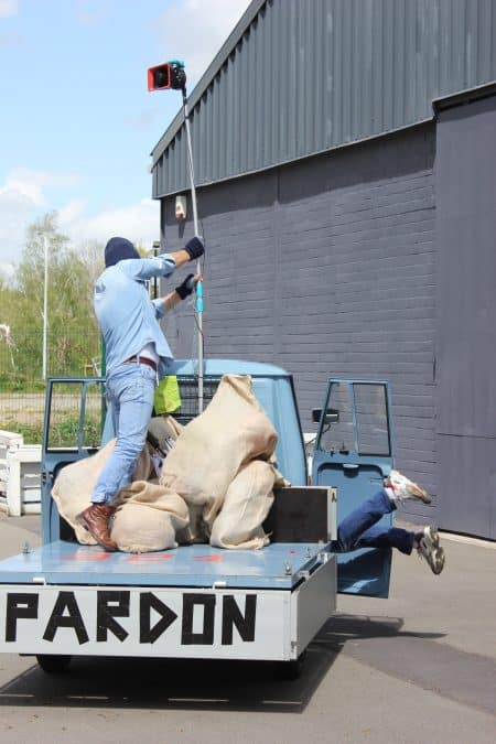 Ambulante, cette intervention va directement à la rencontre de vos citoyens et des locaux. Dans le cadre, par exemple, d’un festival, nos deux brigands vont interpeller les riverains sur le pas de leur porte. Par le jeu, il les informent de la tenue de votre évènement et les invitent à s’y rendre.